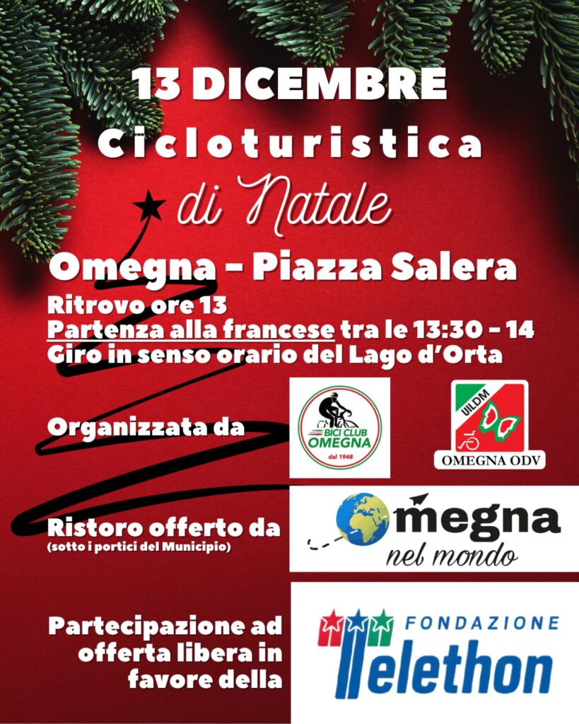 Sempre nel corso della stessa giornata si è anche svolta la tradizionale pedalata amatoriale del giro del Lago d’Orta organizzata, ormai da decenni (precisamente dal 1994) e sempre per il medesimo scopo di aiutare la ricerca, dalla UILDM ODV di Omegna unitamente alla ADS BICI CLUB Omegna. Intorno alle 13:00 si sono radunati diversi ciclisti i quali, dopo aver aderito all’iniziativa con una offerta, hanno dato inizio, alle 14:00 circa al giro del Lago d’Orta raggiungendo Pettenasco, Gozzano, San Maurizio d’Opaglio, Pella, Cesara, Nonio e quindi Omegna.